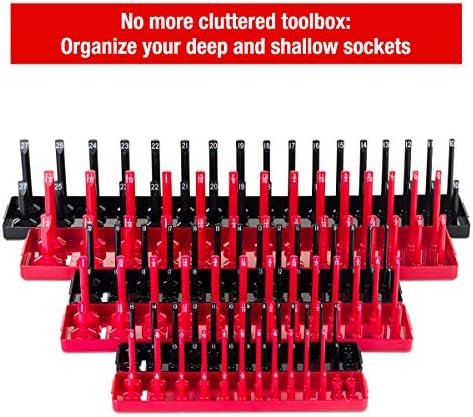 FAST TO RECOGNIZE – Each posts marked with clear socket sizes for instant identification to save your time. Red SAE and black Metric socket tray make it easy to distinguish when they mixed