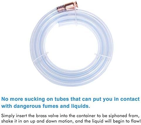 【Easy to Use】The Siphon Pump is easy to use, No more sucking on tubes that can put you in contact with dangerous fumes and liquids – simply insert the brass valve into the container to be siphoned from, shake it in an up and down motion, and the liquid will begin to flow! To stop the flow, remove the fitting end from the liquid. Lightweight and portable siphon manual pump, ideal for various vehicles. Lightweight and portable siphon hand pump, ideal for various vehicles.