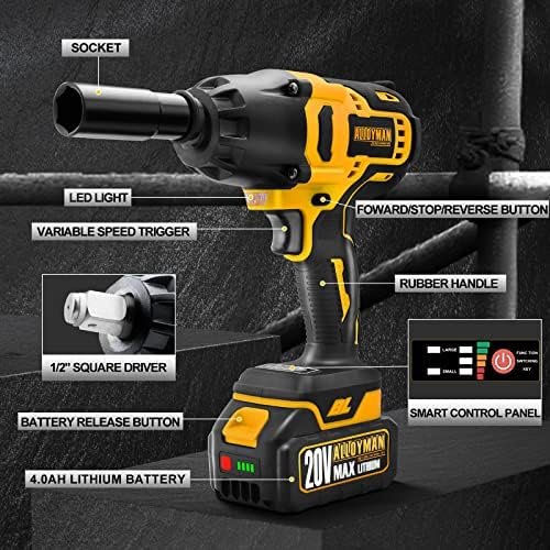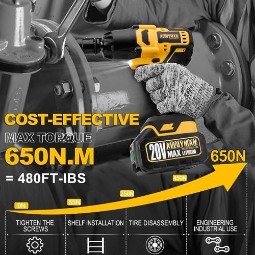 🎁【650N.m High Torque】Impact wrenche delivers 480ft-lbs (650Nm) for driving large fasteners and tough sockets. You can change the speed of the impact power wrench cordless with the pressure you apply to the trigger.