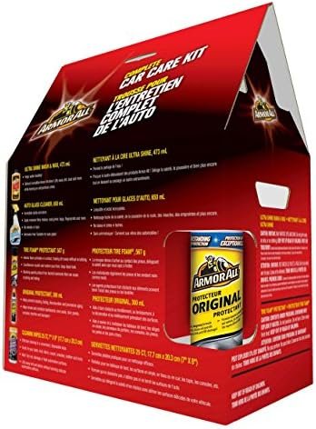 Includes: Armor All Tire Foam Protectant, Armor All Ultra Shine Wash and Wax, Armor All Original Protectant, Armor All Cleaning Wipes, Armor All Auto Glass Cleaner