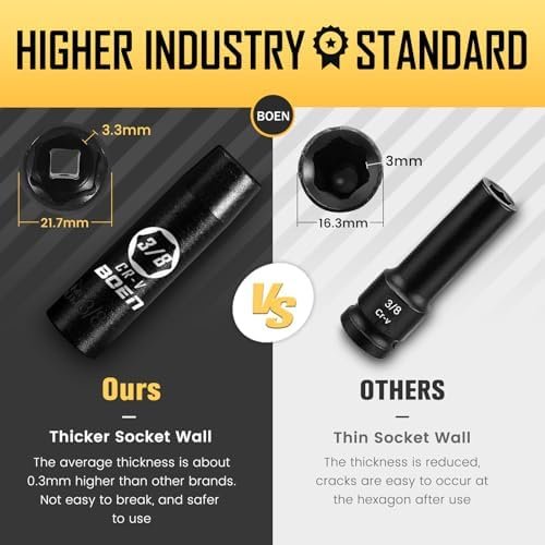 ✅【QUALITY & SERVICE GUARANTEE】 The deep socket set meets ANSI standards. We provide 1 year quality warranty. All hex sockets have been rigorously tested to ensure the best performance and durability. If you have any questions, please feel free to contact us.