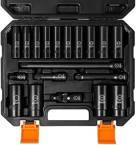 ✅【DEEP SAE SOCKET SET】 Set included: 3/8, 7/16, 1/2, 9/16, 5/8, 11/16, 3/4, 13/16, 7/8, 15/16, 1, 1-1/16, 1-1/8, 1-1/4(inch) deep sockets; 3″, 5″, 10″ extension bar; 1/2″ universal joint; 3/8″-1/2″ adapter. The extension bar can help you turn the bolts and nuts located in the deep recessed part. Suitable for the maintenance of various types of fasteners on the vehicle.