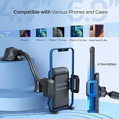 Compatible with 4.7 to 6.9-inch mobile phone: By pressing the button of the side, this car phone holder mounr’s clarm arm can be extended to 93mm / 3.7in, compatible with a mobile phone with 4.7 to 6.9, including almost all models on the market, for example iPhone series, Samsung series, LG series, Google Series, etc.