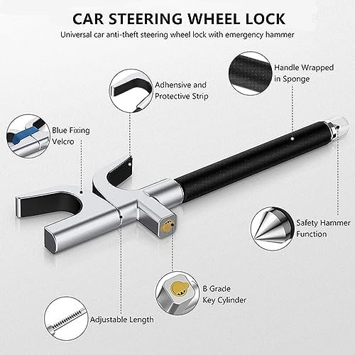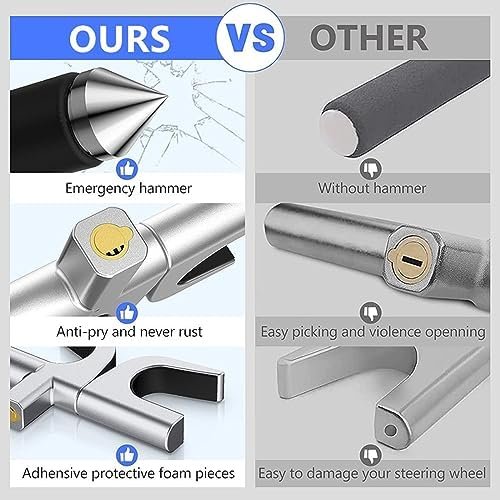 【🔐Our New Upgraded Lock, Better Than Other Competitors!】 –We provide [2 Protective Pads] to you, Others’ NO! Must cause damage or pressure to your steering wheel! We provide [Hammer Cap] to you, Others’ NO! You can’t break the car window or save yourself when emergency happens! We provide [Blue Magic Velcro] to you, Others’ NO! The Lock can’t stored or fixed rightly and scratch to your car! Give us a chance to protect your car!