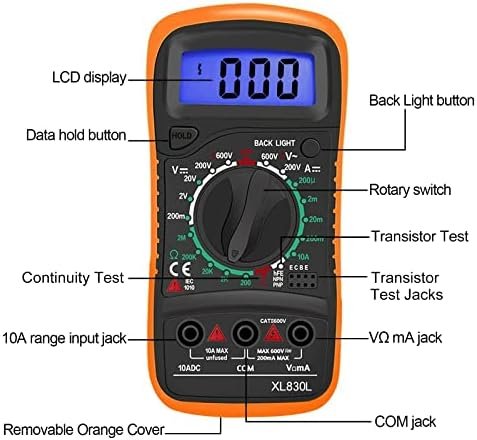 EASY TO USE: 2.7″ Large Backlit LCD Display, Data Hold, Easy to Read Large Back-light Screen for visibility in dimly light areas.Widely use in Car repair, Home use, Schools, laboratories, Families and factories, suitable for Car Drivers, Beginners, Professional Electricians, Housewives, Students Use.