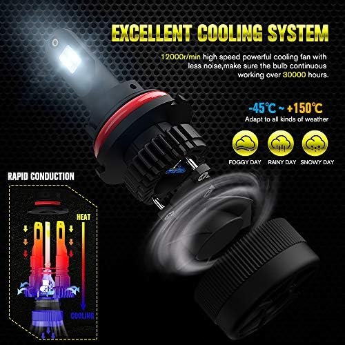 12000LM HIGH LUMENS: These 9004 LED headlight bulbs are made with superior LED chip sets (last over 30,000 hours). Its luminous flux reaches up to 6000LM per bulb (12000LM per pair), which produces similar 6500k xenon white light and brings 3 times more brightness compared with traditional halogen bulbs.
