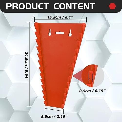 Wrench organizer for tool box is suitable for storing metric wrenches ranging from 6mm to 24mm and English wrenches ranging from 1/4 inch to 1/16 inch