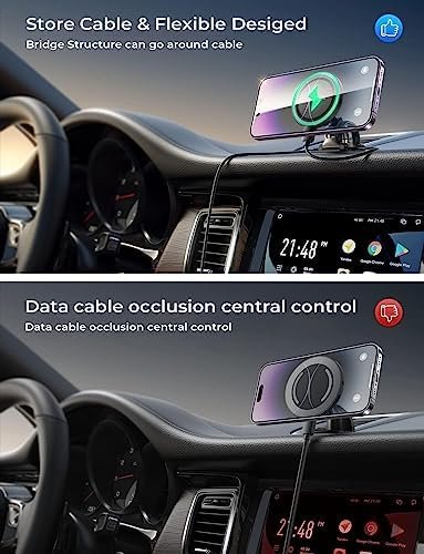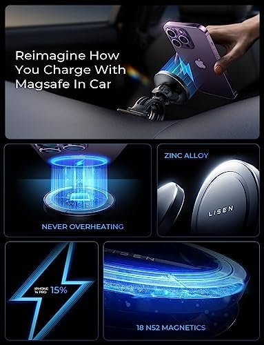 ⚡Expert Holder fit for MagSafe Protect the health of iPhone battery: Equipped with advanced MagSafe technology Fire-proof Prevent overheating, LISEN car phone holder mount wireless charginag supports up to 15W of fast charging. No need to worry about your phone draining too fast while navigating, stay powered up at all time.Please note that too heavy phone cases may affect the charging effect, this is a normal phenomenon that exists in all similar products