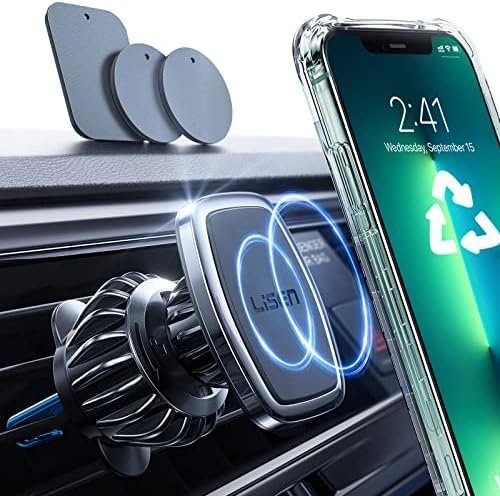 👍LOCK YOUR PHONE FIRMLY: LISEN Magnetic Phone Car Mount with 6 built-in strong magnets, the maximum bearing up to the weight of 6 tablets. Powerful suction keeps your cellphone stay stable even on a bumpy road. PLEASE NOTE:1. It is recommend that use the “square pad” on the back of your phone/case. It is more stable than the round. 2. ANY DEVICE NEEDS TO USE THE METAL PALTE EVEN iPhone 12 and iPhone13 14 15 .
