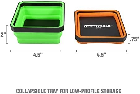 Easy Identification: This magnetic parts tray set includes multiple colors, allowing for easy color-coding of parts tray organizer system includes blue, orange, green, and red collapsible bowls