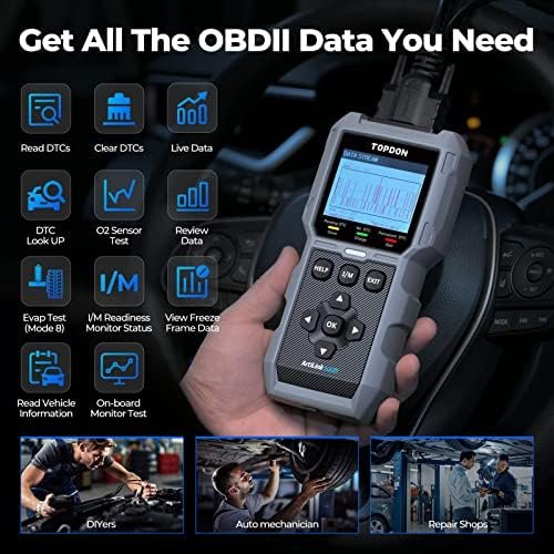 [Get All The OBD2 Data] TOPDON AL500B works as an OBD2 scanner, supporting full functionalities including reading DTCs, clearing DTCs, Viewing Freeze Frame Data and ECU version lookup. It also Includes a one-touch I/M ready button for a quick smog status check and displays the data stream intuitively with waveform graph.