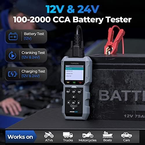 [Pro-level Battery Tester] The Battery Teseter supports Battery testing for 12V batteries to show a battery’s health, current, charge, voltage, internal resistance, and rated CCA. Cranking tests supply information about the cranking voltage and time for 12V/24V batteries. Charging test for 12V/24V batteries display the charging system’s voltage output.