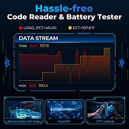 [Wide Compatibility & Multiple Languages] This 2-in-1 OBD2 scanner & battery tester supports full OBD2 diagnosis for 50+ brands, providing greater access to crucial information on even more vehicles. It also supports 7 languages. DTC library can show the DTCs definition directly. (Reach us for compatibility before purchase).