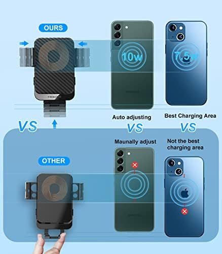 【Automatic Precise Alignment】This car phone mount is a built-in advanced sensor, just place your phone in after power on, it will intelligent identify and auto-adjusting the phone to the best charging area according to your phone model, no need to manually adjust the foot.