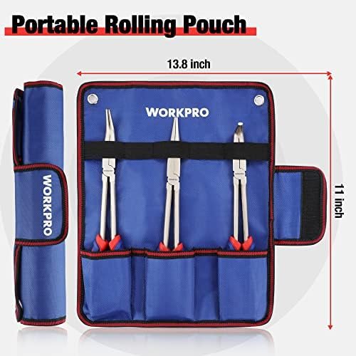 【PACKAGE INCLUDING】Our long reach pliers set includes straight needle nose pliers, 45° bent nose pliers, 90° bent nose pliers, and a rolling storage pouch. This engineer long pliers set is designed for machinery installation and maintenance, automobile, motorcycle repair, pipeline maintenance, etc.